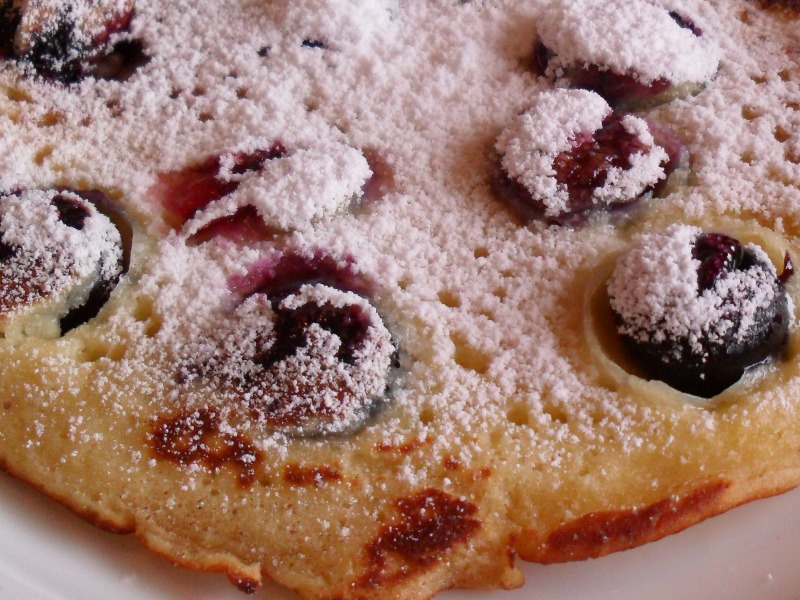 blueberry pancakeAlthough I grew up on crêpes, I still like the fatter American-style pancakes from time to time. And when you include berries baked right into the pancake, they’re downright irresistible. I usually make these with strawberries grown on the deck, but you can use blueberries, raspberries, basically any berry you can get your hands on will probably be great. (The photos show blueberry pancakes.)