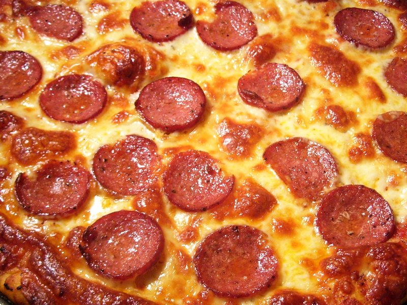 Do everything exactly the same as for the artisan bread up to (and including) step 5. Then, after forming the dough into a round lump, just spread it out into a pizza base. (If you leave it on the bench for 30-60 minutes to warm up it will be much easier to roll out.) You can use a rolling pin, or just use your hands and stretch it like a real Italian. You’ll probably need to apply a bit of flour as you go to stop it from sticking. Once you’ve got the base spread out, smother it in your favourite toppings. Then bake in a hot oven (230°C) for around 14 minutes. You don’t need to wait for it to rise, just use it straight away. For a thin crust, use a bit less dough and stretch it thin. For a thicker crust do the opposite. Forget that bit about allowing to cool before eating too.